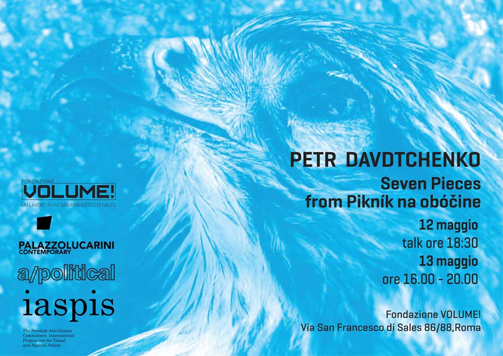 Il 12 maggio 2018 alle ore 18:30 la Fondazione VOLUME!, in partnership con Palazzo Lucarini a Trevi e con il sostegno di a/political di Londra, ospita il lavoro di Petr Davydtchenko, (Arzamas Russia, 1986), che nei prossimi mesi intraprenderà un periodo di residenza presso Palazzo Lucarini. La presentazione di una serie di video che documentano gli ultimi due anni di attività dell’artista russo sarà occasione di un confronto sul tema “Nuovi linguaggi artistici tra oggetto, performance, mutamenti biografici” a cui prenderanno parte l’artista, Becky Haghpanah-Shirwan direttrice di a/political, Maurizio Coccia, Direttore del Centro per l’Arte Contemporanea Palazzo Lucarini di Trevi e Silvano Manganaro critico e curatore. I video saranno in mostra anche domenica 13 Maggio dalle 16:00 alle 20:00 in occasione di Open House 2018.