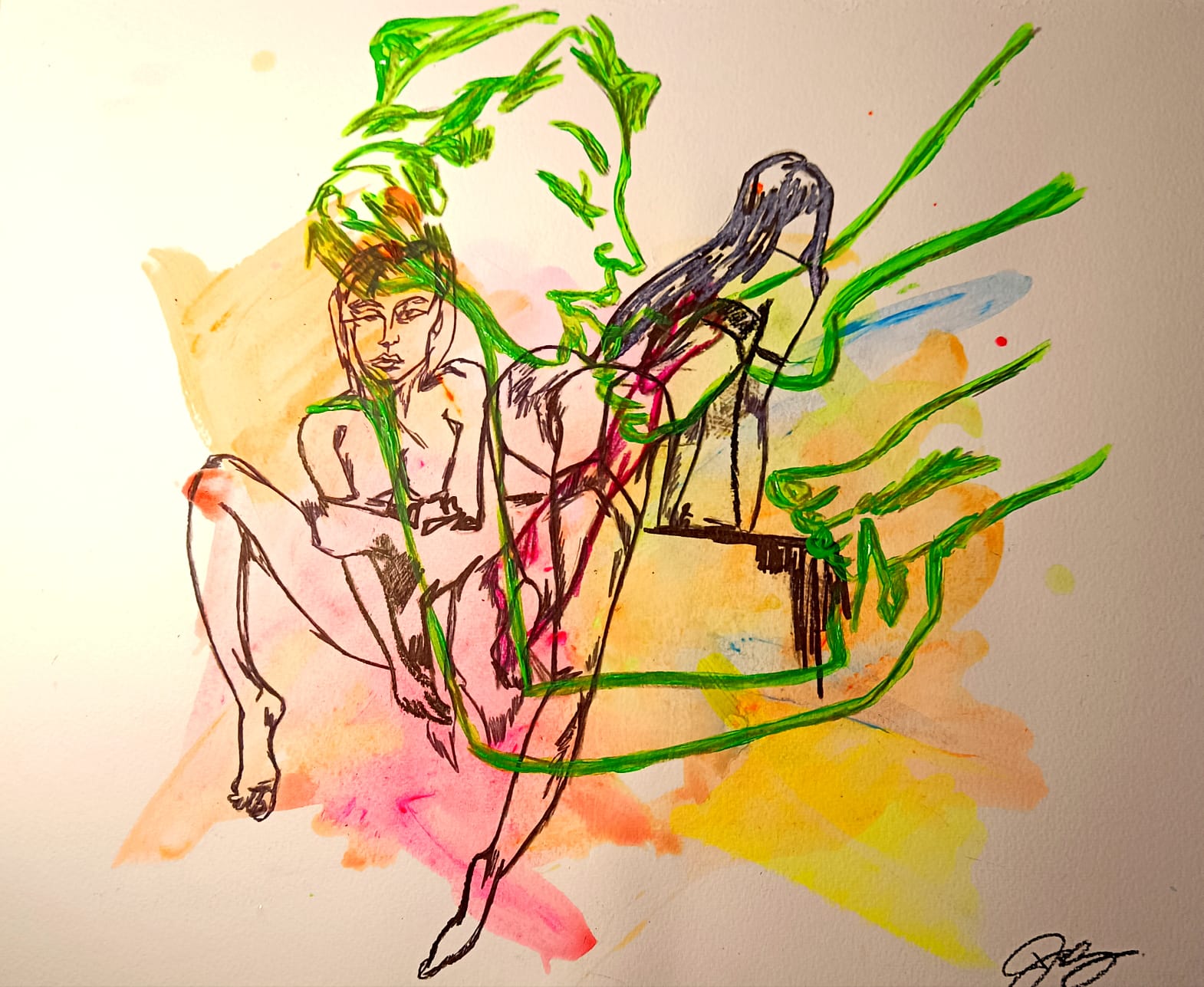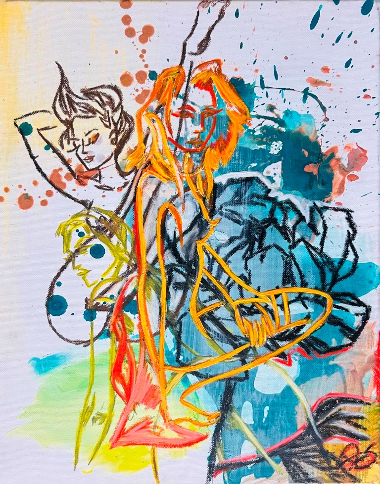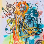 Nell’attuale contesto artistico contemporaneo, Petra Scognamiglio convoglia energia e vitalità all’interno delle proprie rappresentazioni; le convulse trame, talvolta sfacciatamente provocatorie, raccontano delle storie attraverso le sembianze del corpo femminile. Come illustra Giulia Linari nel testo di presentazione della mostra “Mondi intessuti”, all’immaginario figurativo dell’artista si possono collegare le protagoniste del passato, chiari rimandi alle trame di Arianna o la percezione di sfumature della letteratura moderna e contemporanea. La trama, nelle opere dell’artista, funge da medium, elemento comunicativo che connette l’amore per l’arte e quello per il pubblico. Petra, interpreta il filo per simboleggiare la vita, per dare a sua volta vita ad un volto, un corpo umano, animale o qualsiasi figura le vanga in mente, che segnerà pertanto la protagonista della propria opera.