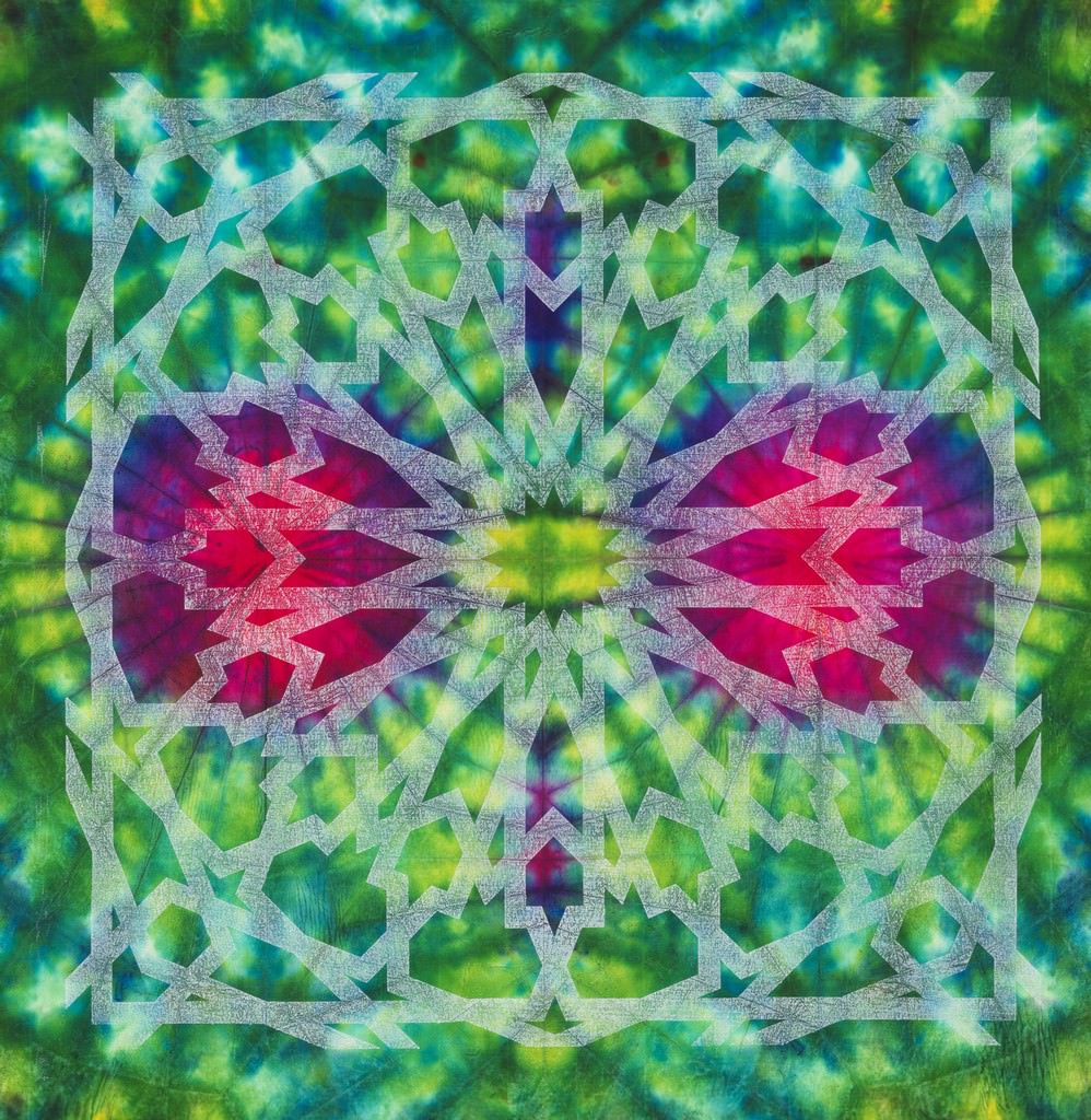 I nuovi lavori che presenterà in questa personale ribadiscono la presenza della stratificazione. Lo sfondo resta sempre territorio sui cui visivamente si distribuisce la psiche che questa volta si manifesta con colori accesi e psichedelici di forte impatto ipnotico. Sopra questo mare infinito, dove il tempo sembra non essere di casa, Philip Taaffe delega a rigide griglie dai toni metallici il compito di riportarci alla realtà. Geometrie perfette perché simmetriche e decise nei toni cromatici che contrastano decisamente con il vacuo sfondo. Il rigore di queste grigie griglie, a ben guardarle, è retaggio delle vetrate medievali a piombo: grosse bordature che contornano fantasmagorici e seducenti giochi cromatici sono citazioni dall’antico che l’artista americano riesce magistralmente a rendere contemporanee.