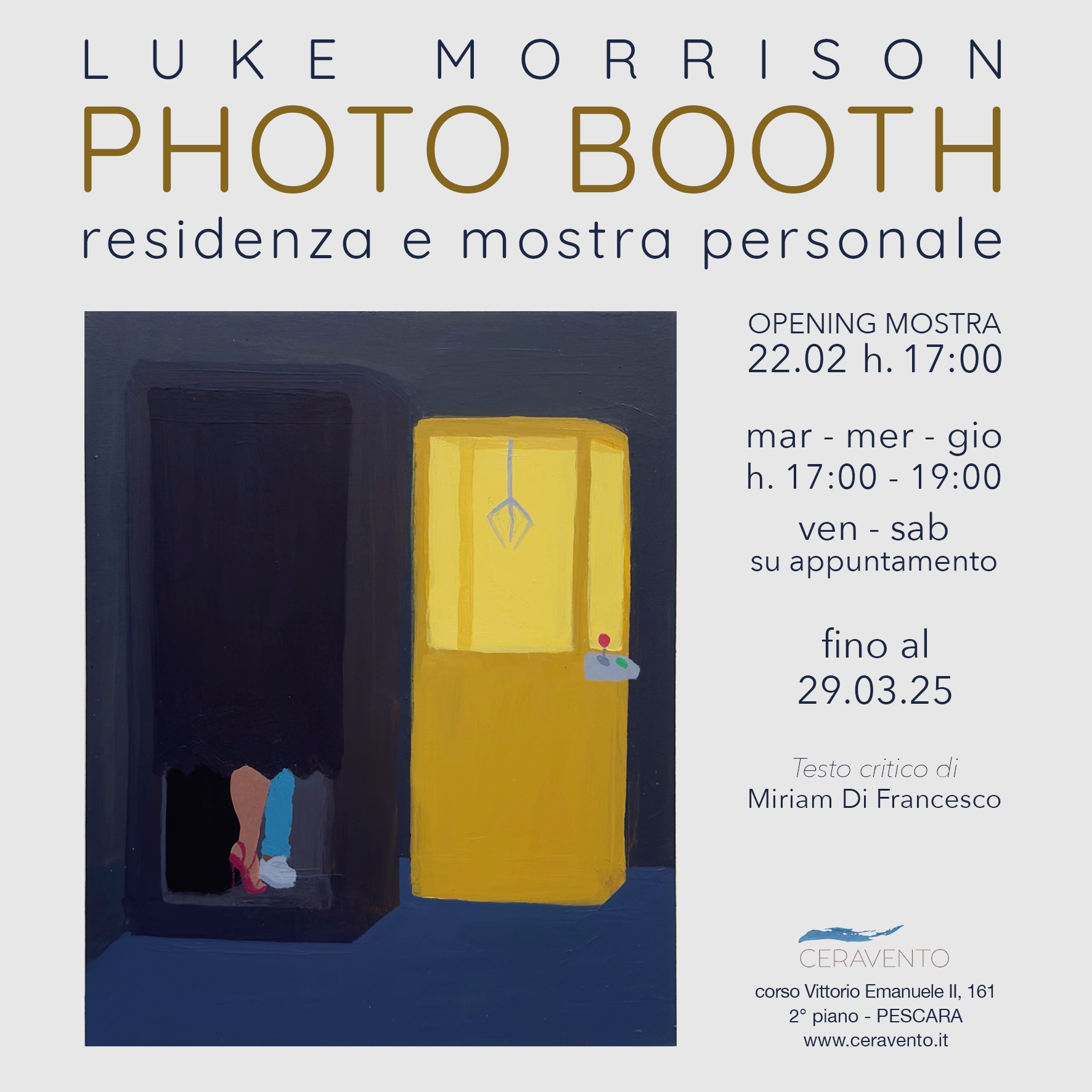 La galleria Ceravento di Pescara, ospita una residenza d’artista che andrà avanti dal 13 al 21 febbraio. Il protagonista è il giovane americano Luke Morrison, che concluderà il periodo di residenza con l’inaugurazione della sua prima personale in Italia, dal titolo Photo Booth.