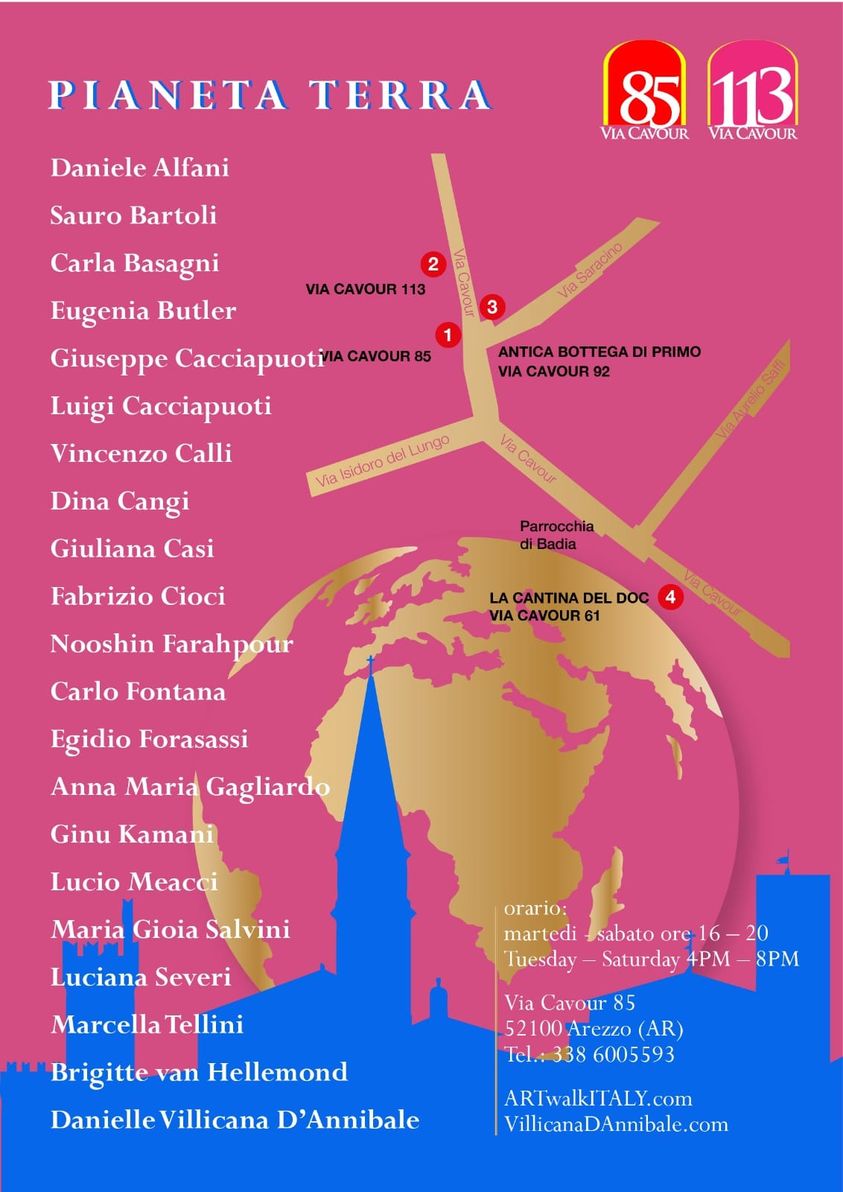 ARTwalk inizia con un vernissage, a Via Cavour 85, con la collettiva “PIANETA TERRA. I prossimi Millenni di Pace”, co-curato da Danielle Villicana D’Annibale e Maurizio D’Annibale. Giornalista Fabrizio Borghini nel corso dell’iniziativa realizzerà un servizio per la trasmissione Arte Incontri.