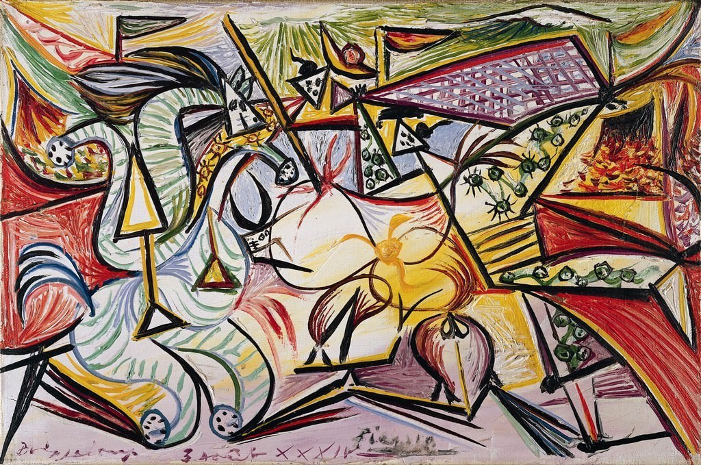Nel 1925 Picasso, ormai stanco di alternare solo due stili, il cubismo e il neoclassicismo, si accostò al surrealismo e, pur senza mai legarsi al movimento, superò tuttavia i surrealisti nel realizzare il loro programma artistico, poiché sapeva meglio della maggior parte di loro come evitare la trappola di illustrare una teoria creando un’immagine. Sempre nella seconda metà degli anni Venti, Picasso diede anche una seconda possibilità a quell’astrattismo che aveva rifiutato nel periodo di massimo sviluppo del cubismo, come testimonia, tra gli altri, un capolavoro come Due donne davanti alla finestra (1927, Museum of Fine Arts di Houston).
