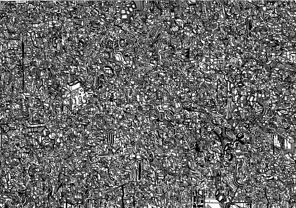 distintivo dei suoi disegni, per esempio, il segno nero su carta bianca, è presente in forma