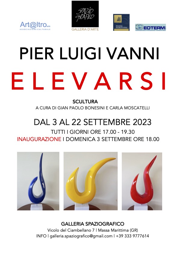 Legato a Massa Marittima dal corso per ceramista tenuto dal prof. Pier Luigi Olla che, per primo, gli ha instillato il grande amore per la scultura, Pier Luigi Vanni – alla sua seconda mostra personale alla Galleria Spaziografico – presenta le sue ultime ricerche scultoree in una mostra dal titolo simbolico: Elevarsi.