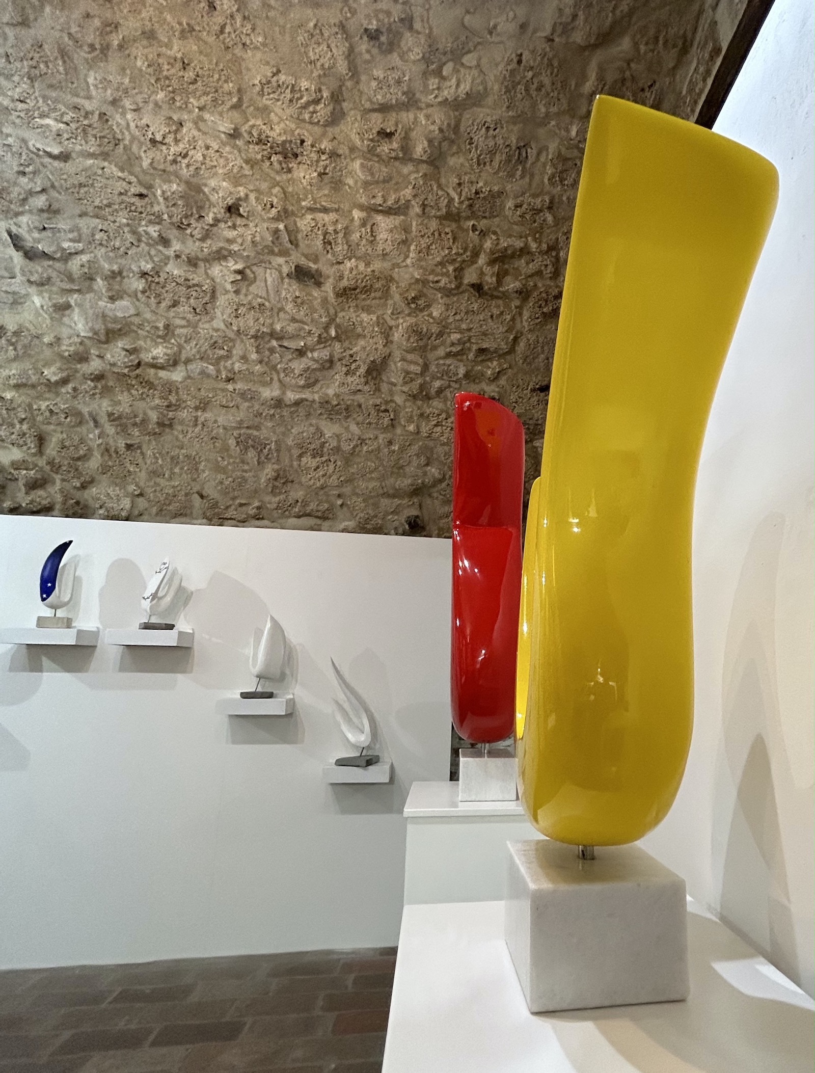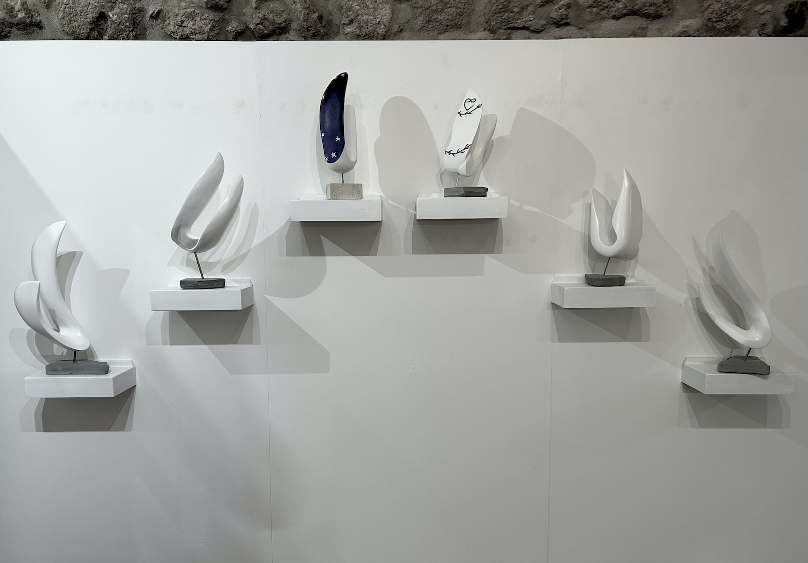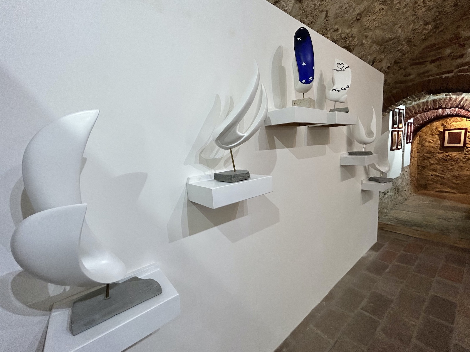 Una mostra di scultura contaminata dal colore e da grafiche e disegni ma che, alla fine, induce inevitabilmente lo sguardo a posarsi sui soggetti già delicati: le piccole sculture bianche che, una dopo l’altra, richiamano il desiderio di elevarsi, migliorare, prendere il volo!