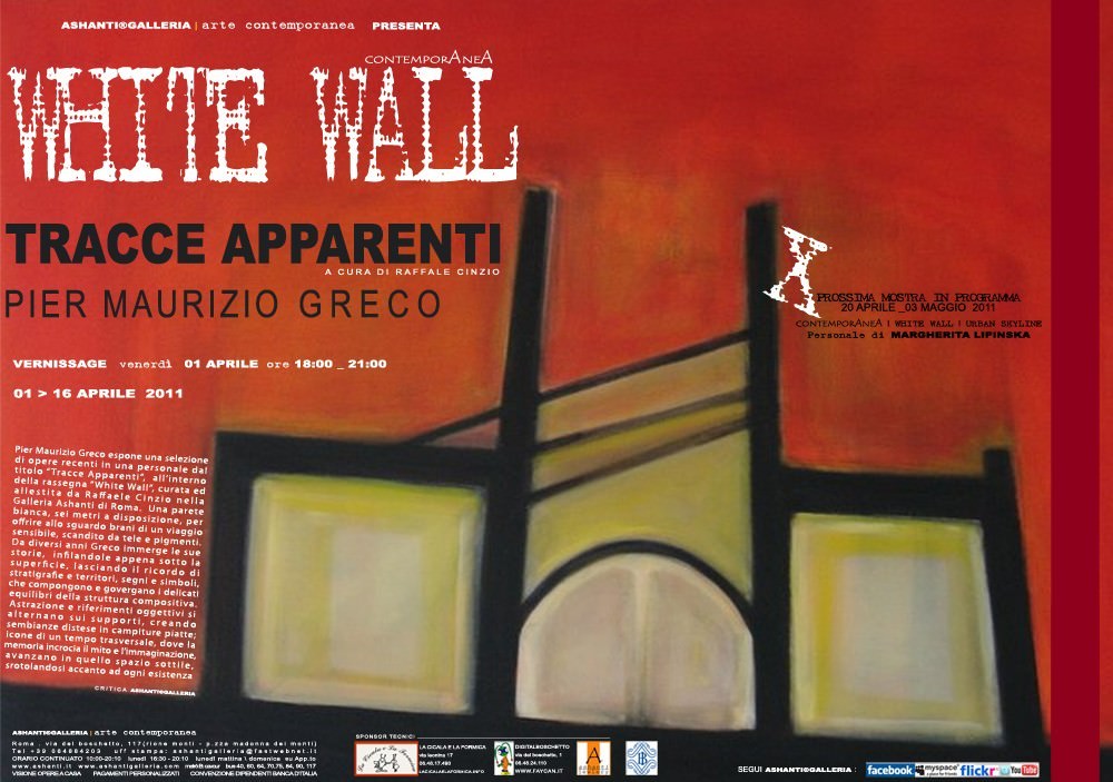 Pier Maurizio Greco espone una selezione di opere recenti in una personale dal titolo “Tracce Apparenti”, all’interno della rassegna “White Wall”, curata ed allestita da Raffaele Cinzio nella Galleria Ashanti di Roma.