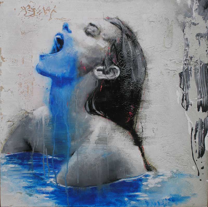 Le figure dipinte, per lo più femminili, entrano a far parte integrante del fondo con pochi tocchi di pennello. Egli rivela in una intervista fattagli dalla rivista giapponese "Art Pictorial" (Novembre 2004) che il soggetto, la donna, è un pretesto per rappresentare l'essenza naturale che in fondo è in ognuno di noi. E' la natura stessa spogliata di ogni pregiudizio o maschera.
