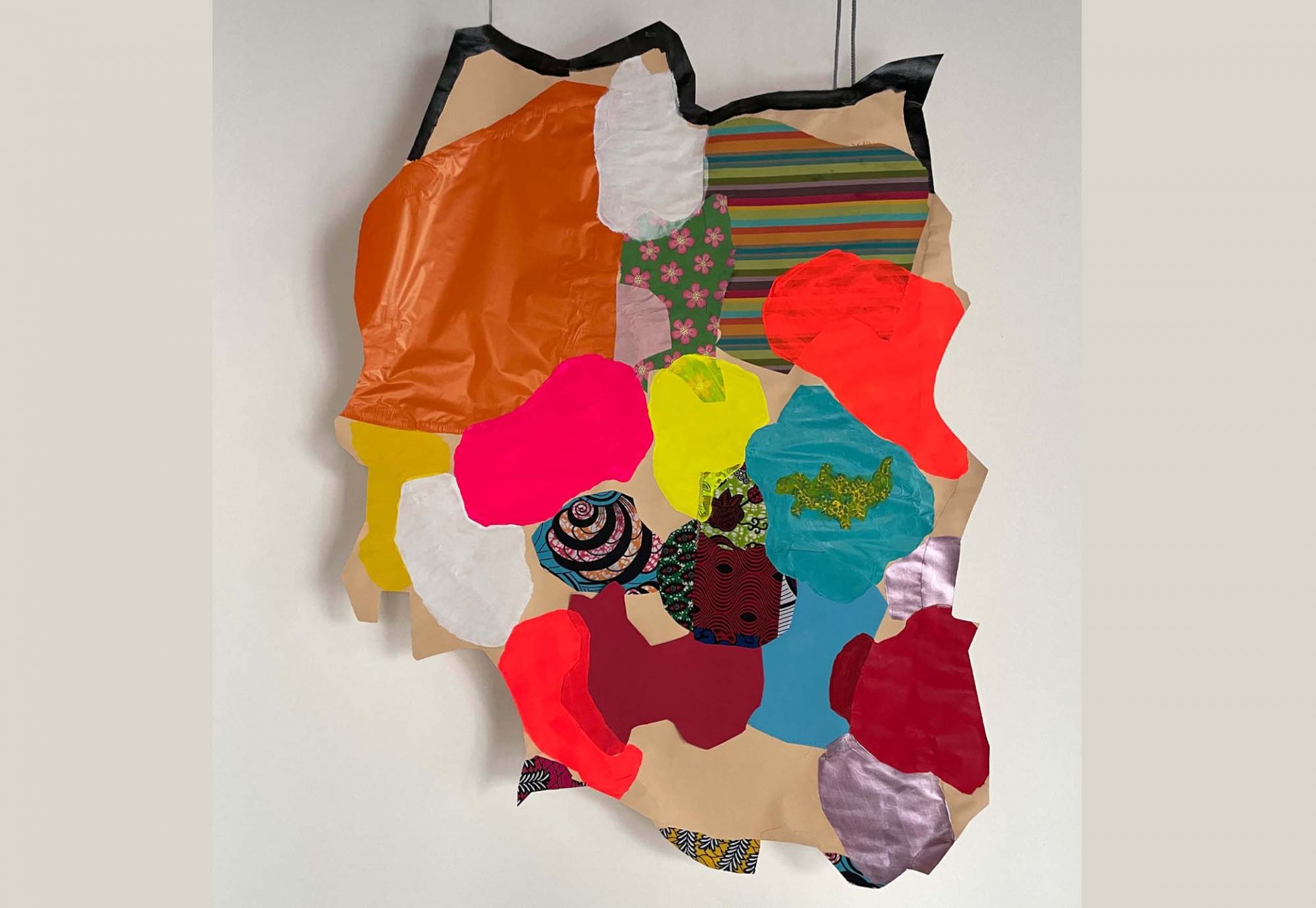 Sono appiccicati: sono tracce di immaginari, memoria. Carta da scena, tessuti decori gomme. Tutti attori alla pari all’interno del quadro. Idee sedimentate nel quotidiano sulle quali l’artista costruisce percorsi e che oggi forse si aprono a nuovi sentire, a nuove possibilità.