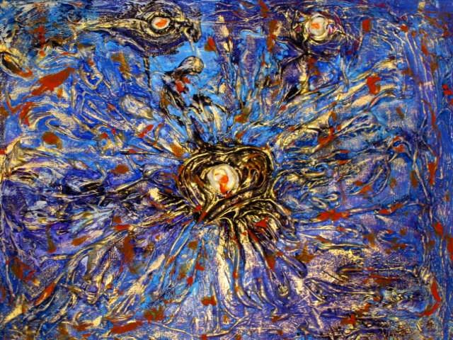 "I quadri molto materici cambiano aspetto a seconda della luce a cui vengono esposti. Anche il tipo di luce fredda come il neon, o più calda può essere determinante nell'evidenziare la dimensione della profondità. E che dire poi del gioco di ombre generato dalla luce quando illumina la tela ...!! "