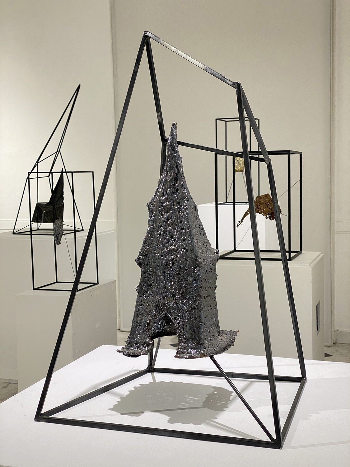 Il Museo d’Arte Contemporanea di Villa Croce di Genova dedica, dal 2 dicembre 2022 al 5 febbraio 2023, una mostra personale a Piergiorgio Colombara. Il titolo dell’esposizione, Neroro, è legato al ciclo di dipinti inediti, acrilici su tela, tutti di grande formato, realizzati dall’artista tra il 2017 e 2021; in mostra ci sono pure altri quadri (tra cui lo splendido Cantoria, acrilico, ottone e tempera su tela, 1988) che di Colombara, noto soprattutto come scultore, fanno conoscere un aspetto della sua ricerca, avviata fin dalla fine degli anni settanta. Emblematica del reciproco transito tra pittura e scultura sono due opere del 2017, un dipinto e una scultura, che recano lo stesso titolo: Inpunta. Non mancano del resto, nella mostra antologica di Villa Croce, alcune delle sculture che hanno segnato l’affermazione dell’artista in ambito nazionale e internazionale: tra le altre, Suononous, ottone e rame, 1985; Mulino, ferro, rame e ottone, 1992; Lacrime di vetro, ottone e vetro soffiato, 1997 (collezione del Museo di Villa Croce); L’audace carena, bronzo, 2007; Culla, bronzo, 2014; numerose opere che documentano l’inesausta esplorazione di Colombara nell’utilizzo di vari materiali, compresi la terracotta e il ferro.