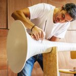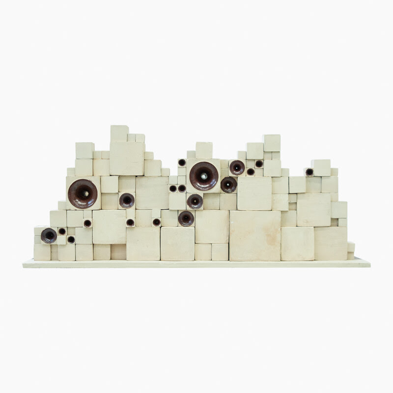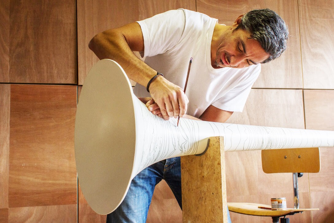 Nella sua ricerca per la forma acustica più efficace, Pompei trova una curva logaritmica che assomiglia per tutto alla forma di una tromba, dove il gesto artistico prende vita e “chiede solo di essere "liberato".