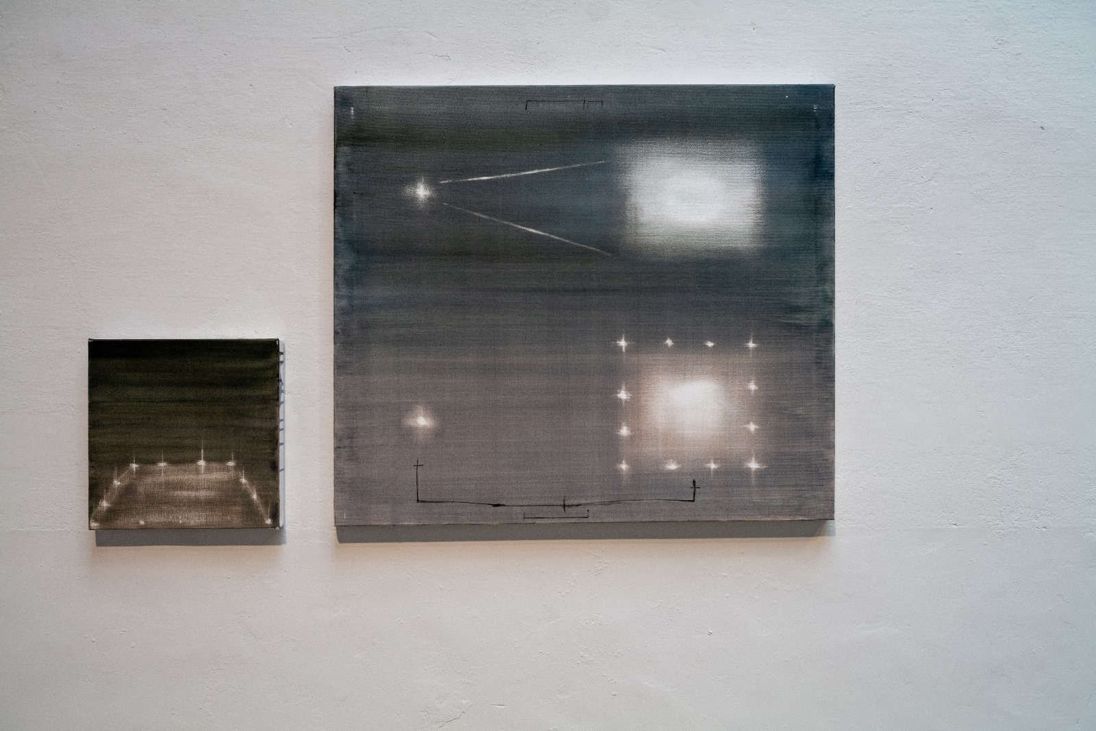 Lavorando sul concetto di pittura, Pusole pone in esposizione un ciclo di lavori, le cui luci riflesse e ombre lunari rivelano ipotesi e intenzioni di altre facce e possibilità di un nuovo vedere. Strutturalmente e concettualmente, potremmo dire che l’esposizione a Villa Rospigliosi ha come nucleo di partenza la luce, elemento-base del vedere e della pittura, insieme al suo contrario, l’ombra. Luce naturale, solare, rivelatrice di spazi e volumi, il cui esserci e strutturarsi mostra ipotesi e intenzioni intorno all’esser qui, abitanti di questo pianeta, in rapporto a quanto ci preesiste e ci circonda.