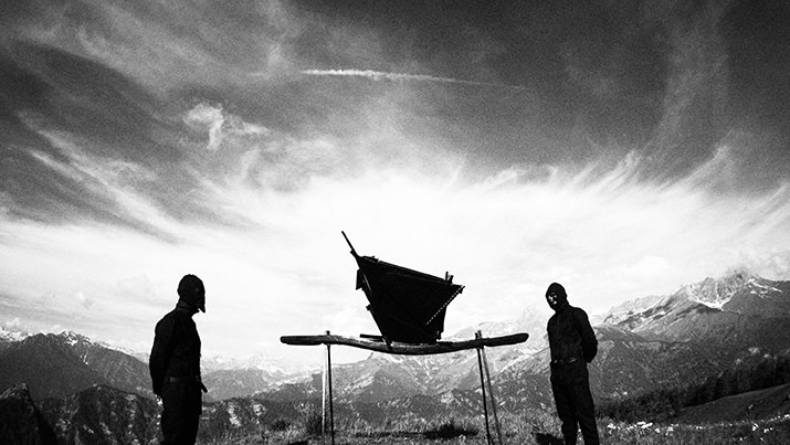 Per l’happening ospitato in galleria utilizzano una macchina imponente, una scultura poggiata su due lunghi assi che gli artisti sorreggono sulle spalle e che portano con devozione al pubblico.