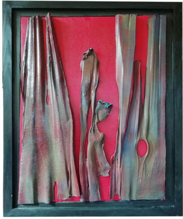 Evoluzioni Materiche, è una serie di nove opere di piccole dimensioni, che mette in discussione la capacità di trattenere il colore per poi restituirlo in una apparente frammentazione ottica, causa di superfici porose, cave, sovrapposte o distaccate.