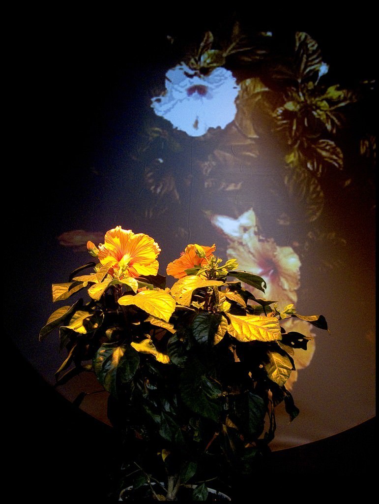 Al centro dell’installazione Eppur si muovono di Gilardi c’è la vita: un Ibiscus, autentico produttore di informazione. La pianta è collocata all’interno di una serra con condizioni di temperatura e umidità ottimali e la sua crescita è costantemente ripresa da una videocamera. Quando il visitatore la sfiora con le mani si attiva una proiezione sullo schermo retrostante che mostra i movimenti della pianta con un’accelerazione che li rende molto evidenti.