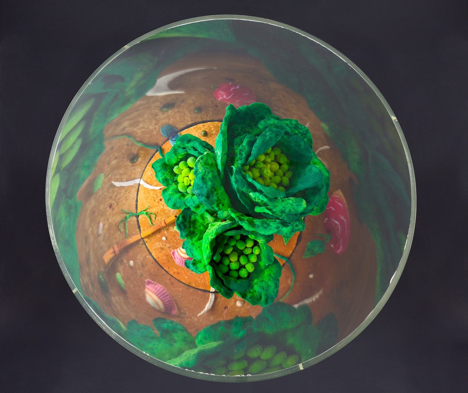 Giardini curiosi, animati da palme esotiche, ninfee, pitaje, viti, pini di montagna, grano e papaveri, cactus, cavoli canari, opunzie, datteri, germogli di banano, girasoli, rose, sterlizie, ireos, peonie, pesche, rizomi, melograni, aceri rossi, betulle e funghi.