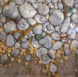 Piero Gilardi sperimenta la materia, riproduce la natura artificialmente, denudando il gioco perverso della scienza e della modernità industriale che copia dal vero per creare il falso, il verosimile, il quasi – autentico.