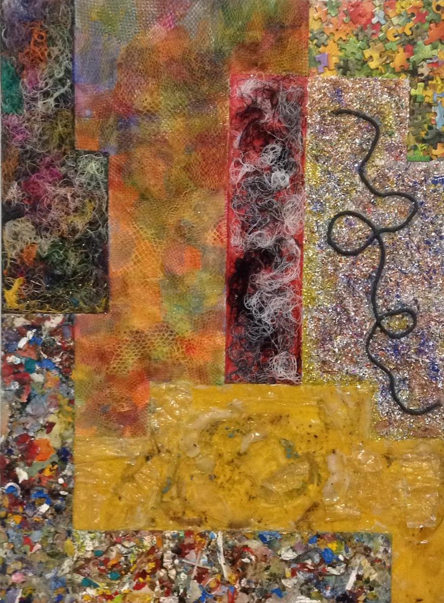 in questa mostra viene presentata una serie di opere realizzate assemblando ritagli di stoffe, nastri, girandole e altri piccoli oggetti che danno vita a partiture nelle quali l’impianto geometrico è incrinato da una latente asimmetria e il cromatismo acceso si gioca tra armonia e disarmonia.