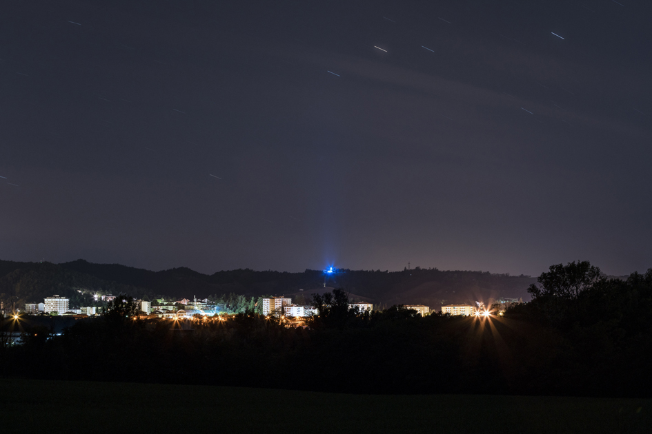 Domenica 27 ottobre 2019 a Serravalle Scrivia sarà inaugurata l’opera “Chiesa Blu” installazione luminosa ideata e realizzata da Piero Mega per la Chiesetta di Santa Maria del Carmine situata sulla vicina collina di Montei.