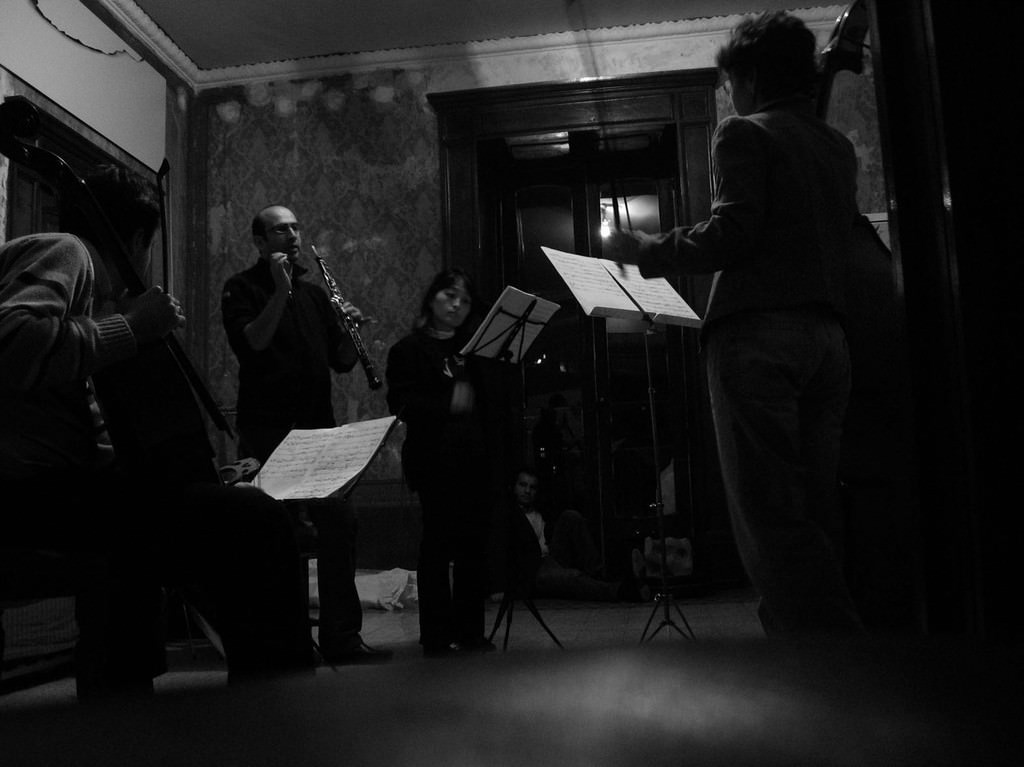 Interno disperso si riveste di un’aurea classica, si offre allo spettatore come una esecuzione per strumenti e voce, ma dietro le estensioni acustiche, si nasconde un metodo calibrato e condiviso che cerca di individuare un rapporto inconscio fra suoni, colori ed emozioni.