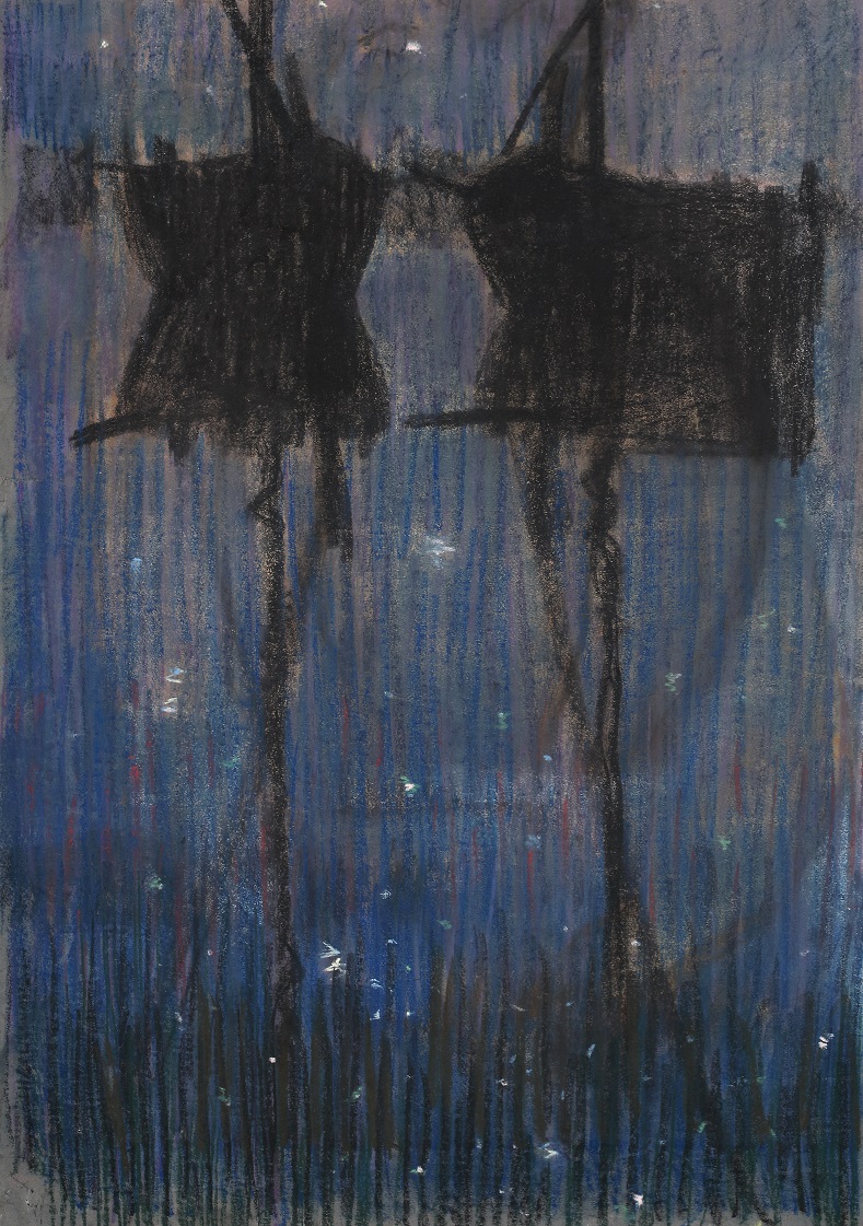La mostra è una scenografica carrellata di fantasmi, amanti, centauri, sirene, enigmatiche figure femminili, pesci, flora acquatica, soffioni, cardi, figure allegoriche o ammantate, notturni, tramonti, aurore, barche spettrali, cieli stellati. Composta da oltre sessanta opere su carta di cui molte di grande formato.