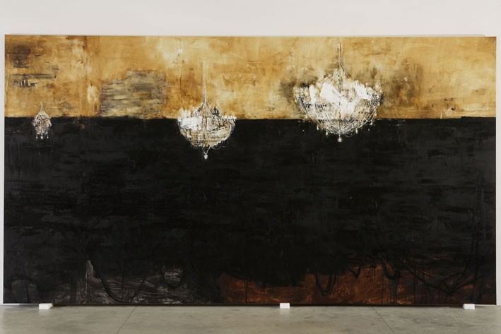 Alla Galleria Poggiali e Forconi troveremo dieci opere circa, di cui sette di grande formato e alcuni disegni, tutti su cartone, su cui sono accennati dei pianoforti, ricordo dell’oggetto piuttosto che rappresentazione dell’oggetto stesso. Il tema del pianoforte, dipinto su tela, la più grande per dimensione mai realizzata dall’artista, introdurrà Salon de Musique alla Galleria Alessandro Bagnai, e farà da ideale trait d’union, tra le due sedi espositive. Da Bagnai, ci saranno dieci grandi opere e una serie di lavori su carta dove si ripetono lampadari imponenti e scintillanti.