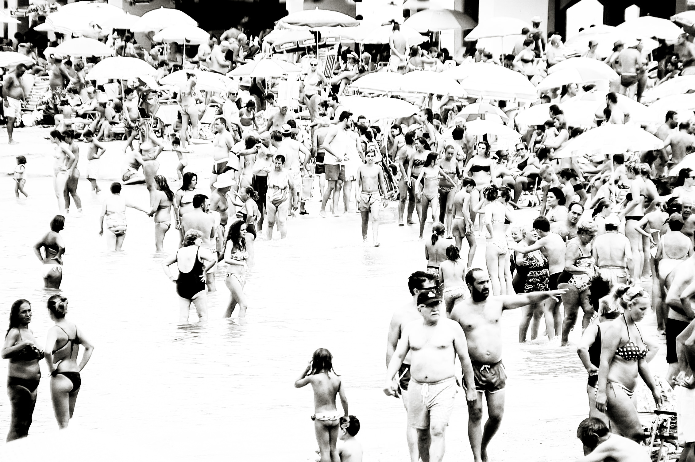 La visione d'insieme (la somma di folle indistinte) vuole rappresentare la ritualizzazione del nostro agire quotidiano, le spiagge affollate d'estate, i centri commerciali, le piazze dello shopping e gli stadi.