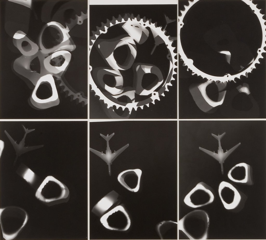 I soggetti delle sue immagini -garofani, calamari, ombrelli e altro- sono stati messi direttamente sulla carta fotografica in camera oscura e illuminati diligentemente per alcuni attimi con la luce del flash o di una lampada”.
