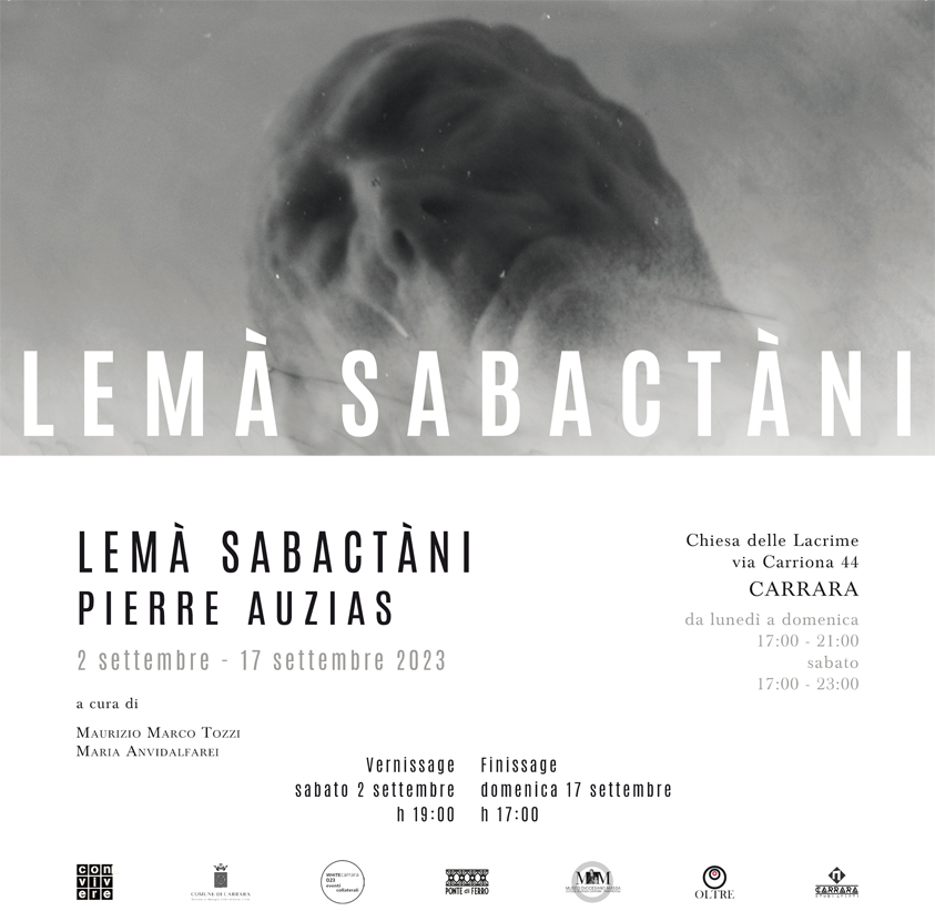 Sabato 2 settembre alle ore 19, si inaugura la personale “Lemà Sabactàni” di Pierre Auzias (fino al 17 Settembre), a cura di Maurizio Marco Tozzi e Maria Anvidalfarei, con il patrocinio del Comune di Carrara e la collaborazione di Con_vivere.