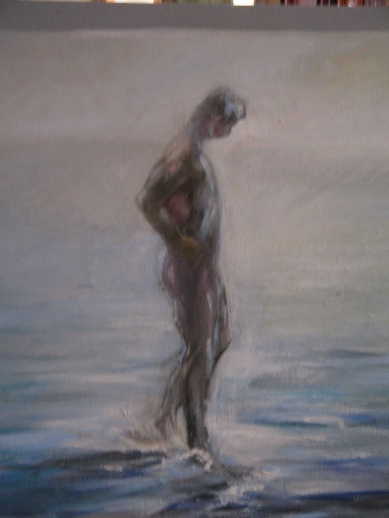 Sulle tele si impressionano immagini di spazi aperti, spiagge, nebbie, frammenti d’architettura industriale, periferie nebbiose, contro le quali spicca il viaggiatore chiuso nel proprio isolamento.