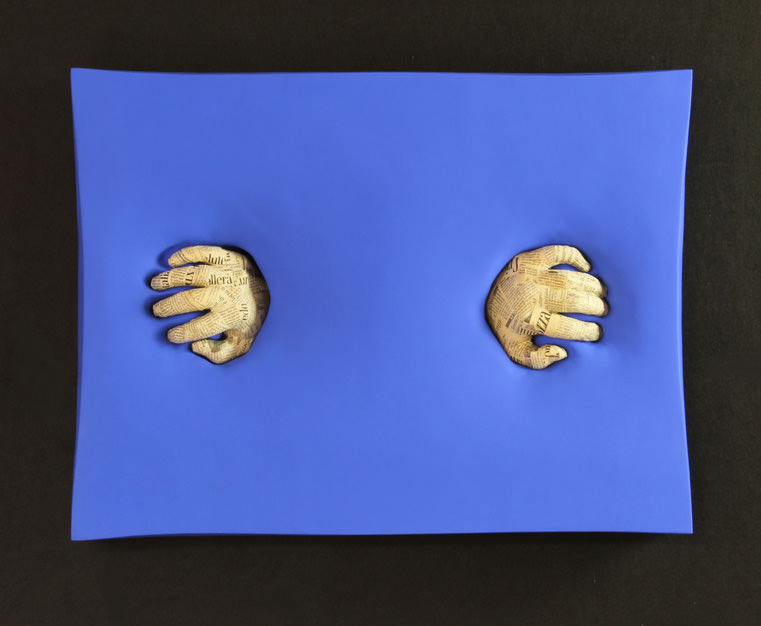 Alcune opere di Pietro Maietta recano come titolo recezione. Il termine è una variante meno comune di ricezione ed è usato in contesti formali nei quali si dice del ricevere qualcosa come un pacco, una lettera, un’informazione. Le opere alle quali l’artista ha dato questo titolo sono minimali. Rappresentano una ridotta parte del corpo incastonata in un campo chiaro e levigato, caratteristica propria di tutta la sua scultura. Il gruppo di opere, seppure non più significativo rispetto a tutta la produzione rimanente, può tuttavia offrire un’interessante chiave di lettura. Come spesso capita nell’approfondire il percorso di un artista, si può procedere con una sineddoche, una figura retorica che restituisce una parte per il tutto. Alcune opere sembrano, infatti, contenere in nuce l’universo estetico che si esplicita in tutta la produzione completa. Nelle opere considerate, dunque, c’è il tentativo di isolare una forma, di separarla spazialmente, di sottrarla al resto, anche decontestualizzandola, per proporre al visitatore una piccola sfida. Egli deve, infatti, scoprirla, interpretarla e comprenderla. Riappropriarsene la immette nuovamente nello scambio relazionale, al quale l’artista l’ha sottratta. Ma non è semplice. “Se puoi, siediti”: l’opera con questo titolo invita a compiere un gesto semplice che però l’arte ha reso difficile o almeno imbarazzante. Come ci si siede su una sedia dalla quale spunta, sorprendentemente, una mano? Per ricontestualizzare la sedia bisogna superare il fastidio. Chiedersi che cosa può succedere. È quel che si chiede il visitatore che deve chiudere (o aprire) una cerniera immobile che sembra contenere una massa debordante di notizie. Ecco dunque che torniamo al tema della recezione. L’artista, con la sua ricerca, si fa carico di un’esperienza che condivide con il suo spettatore: l’impossibilità o almeno la difficoltà di controllare quanto nella realtà appare banale e quotidiano. Innanzi tutto, nei processi di comunicazione. Questa visione anima il progetto per lo spazio della Galleria Nuvole Arte. Accanto alle opere che testimoniano un lungo percorso creativo, Maietta pone un uomo, o piuttosto una sagoma dalle forme umane, costituita in realtà da molteplici unità formali, bolle, sassi, materia tonda e chiusa, a sua volta formate da brani e lacerti tratti da periodici e quotidiani. Il tutto appare come qualcosa di tranquillizzante, per via della postura rilassata, ma al tempo stesso denuncia un processo pericoloso. L’atto dell’assoluta recezione finisce per formare l’individuo stesso che ad essa si offre passivo. È una visione allarmante, forse, ma non è forse compito dell’artista di metterci in guardia da noi stessi?