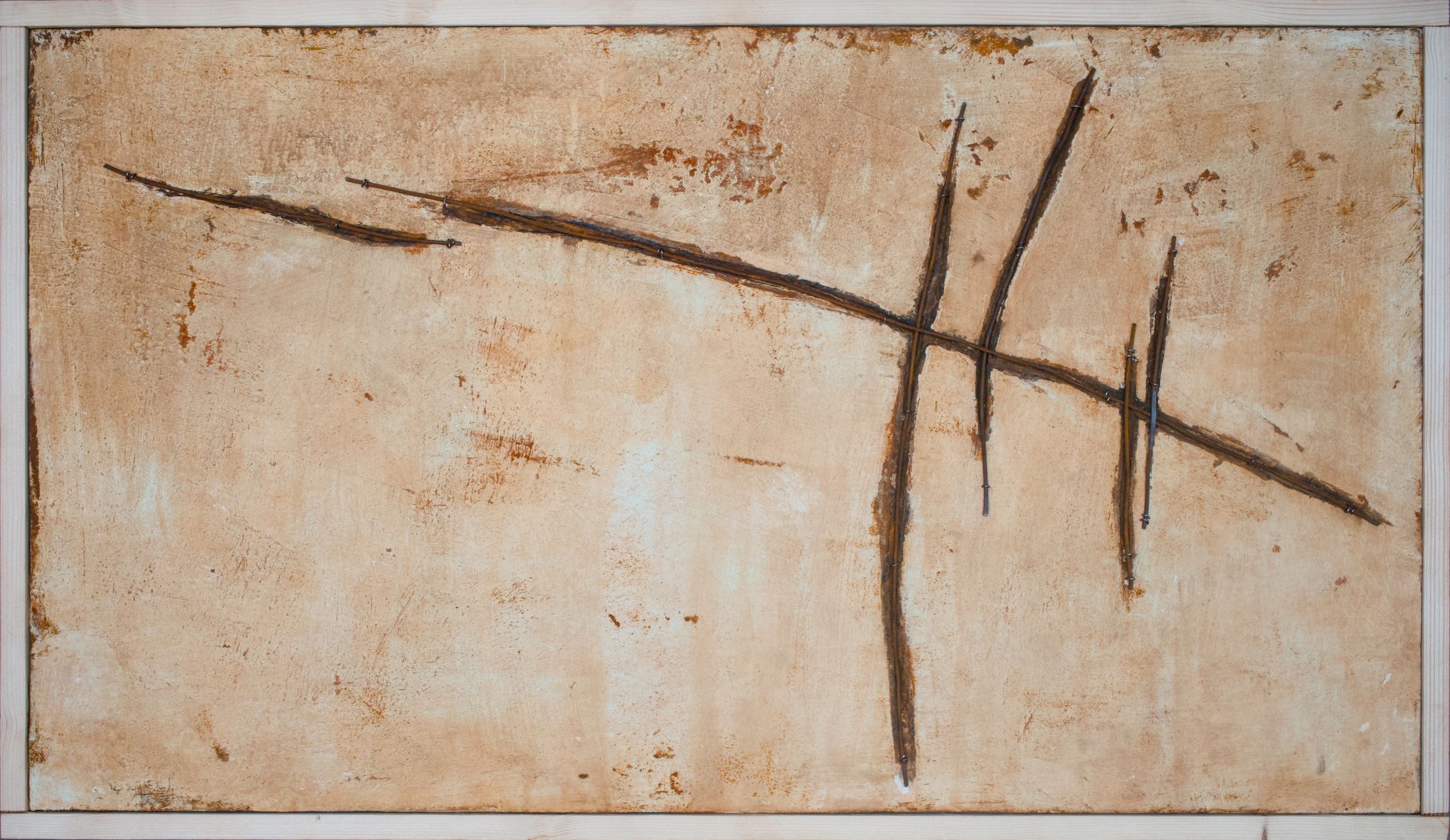Autodidatta da un intimo inconscio di echi del ‘900, sperimenta un legame tra pittura e scultura in un complesso linguaggio materico. Nella sua poetica sente il bisogno di incontrare la vitalità del nero, nella ruggine gli alberi, un cielo di rame dai grigi a confine e rossa la solitudine.