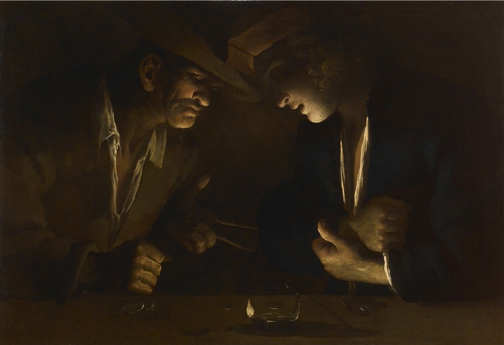 All’interno della nutrita serie di scene a lume di candela, di lontana derivazione caravaggesca, dipinte da Pietro Ricchi, sono stati scelti per la mostra alcuni pezzi esemplari sia per la tematica profana, tra cui i Giocatori di morra (Parigi, Galerie Canesso), che religiosa, quale la splendida Giuditta con la testa di Oloferne del Castello del Buonconsiglio. Esempi significativi della capacità di Ricchi di creare impalcature illuministiche a partire dal flebile chiarore di una candela si ritrovano pure nei dipinti dell’Inviolata, in particolare nella Flagellazione di Cristo e nell’Incoronazione di spine, che fiancheggiano l’altare del Crocifisso. Figureranno in Pinacoteca anche alcuni dipinti che, pur non rischiarati dal ‘lume di candela’, sono caratterizzati da un forte impianto luministico. Ciò è evidente ad esempio nel Riposo durante la fuga in Egitto del Castello del Buonconsiglio di Trento, delicata scena familiare ambientata in una notte buia, illuminata da un bagliore innaturale puntato, come fosse un riflettore, sul nodo emozionale più intenso.