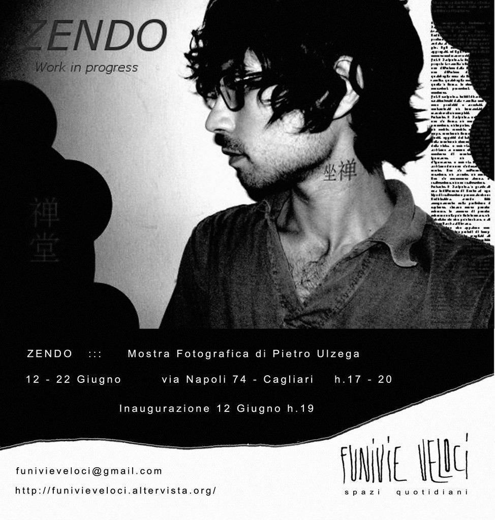 Lo zazen di Pietro Ulzega è una fotografia silenziosa. Still di sparizioni, apocalissi minimali e luoghi dove l'agire dell'uomo scomparendo ha lasciato un vuoto che suona. Come lo spazio dell'ex pastificio artigianale che ospita questa mostra presentata da Funivie Veloci.”