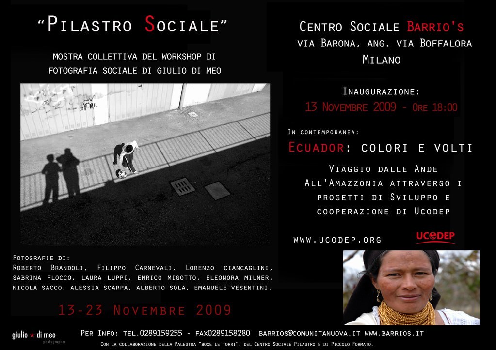 Giulio Di Meo ha voluto trasmettere ai suoi allievi il concetto di “fotografia sociale” interpretando la fotografia come necessità di una sensibilità, di un’etica, di un impegno particolare. Una fotografia che lui stesso afferma come “desiderosa di farsi carico delle lotte, della rabbia, indignazione ma anche di amore, passione, speranza; una fotografia impregnata da un’intensa umanità.” La “fotografia sociale” quindi vuole essere una sorta di ricerca antropologica dove il fotografo viene immerso nel contesto che lo circonda, dovendosi inserire in tale realtà senza creare ulteriori difficoltà. Il contesto questa volta è stato il Pilastro, quartiere della periferia bolognese sorto negli anni sessanta con la costruzione di numerosi condomini di edilizia pubblica. E qui vivono tante persone che dal sud Italia sono arrivate a Bologna nell’epoca del boom economico per cercare un lavoro. Oggi si mescolano a queste persone molti stranieri, protagonisti di esperienze simili, ma ogni volta uniche e singolari. Si amalgamano così vite diverse che creano un melting pot di culture e usanze provenienti da differenti luoghi del mondo. Ogni persona è lo specchio di percorsi differenti e condivide ora un presente comune. La vita si tocca, si vede e si percepisce nella quotidianità delle strade e dei parchi. Come il prato del parco Pasolini è punto di incontro di molti ragazzi che si incontrano qui, così dietro il “virgolone”, enorme edificio costituita da molti appartamenti e diversi piani, gli anziani lavorano gli orti comunali, riposano e giocano a carte seduti sulle panchine. “Pilastro” significa anche tenacia, costanza, fatica, e naturalmente credere nei propri mezzi e nell'energia che si respira quando ci si mette in gioco. Qui la palestra di Boxe e Muay Thai riunisce i giovani che passano i loro pomeriggi sognando di diventare dei campioni. Il Pilastro è anche sport, quello vero, che parte dal basso e nasce dalla passione. Una passione che unisce. Ed ecco le persone che ci hanno permesso di rappresentare qualche istante della loro vita. Queste fotografie vogliono gettare uno sguardo sulla realtà del Pilastro e. svelare cosa significhi farne parte. Vogliono aiutare a leggere oltre i confini di un quartiere che erroneamente viene etichettato come periferico, degradato e come luogo di disagio sociale. In questo racconto potreste scoprire una realtà diversa, non inquinata da pregiudizi e luoghi comuni. Una realtà che ci ha affascinato e sorpreso. Provateci, forse ne rimarrete colpiti.