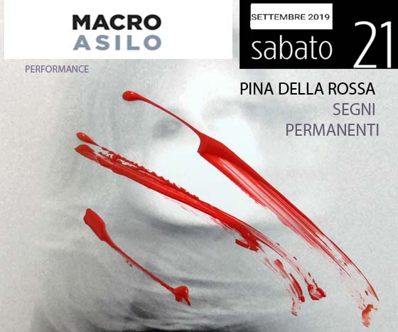 Pina Della Rossa offre una sua foto in bianco e nero, che rappresenta il suo volto a cui sono stati tolti naso e bocca, sulla quale l’osservatore interviene, con pittura rossa, tracciando dei “segni permanenti”.