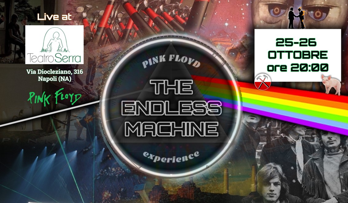 A grande richiesta, al Teatro Serra di Napoli tornano i “The Endless Machine” fondata nel 2022 da Luca Melorio, Rita Genni e Ciro Miranti con il concerto “Pink Floyd Experience”, ospiti venerdì 25 e sabato 26 ottobre, alle 20:00, dello spazio di Fuorigrotta, in Via Diocleziano 316. Sul palco anche Emanuel Savarese alla batteria, Giuseppe Adrigeri al basso, Bruno Crupi alle tastiere, Massimiliano Mauriello alla chitarra ritmica ed Emanuele Palomba al sax. Info: teatroserra@gmail.com, 347.8051793.