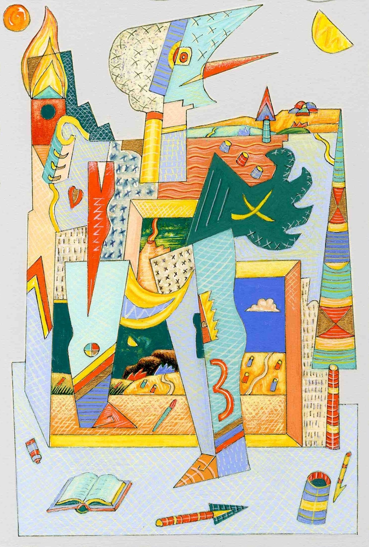 Le forme e il colore si dipanano nell’opera percorrendo sentieri diversi: le forme - frattaliche e/o geometriche - inglobano memorie,mentre il colore crea incantamenti attraverso una tissularità necessaria e vivificante. Ironici i titoli delle opere che mostrano immediatamente il lato giocoso dell’artista.