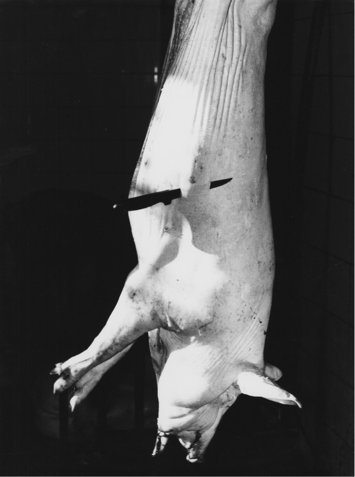 In questa mostra, curata da Simona Guerra, ci troviamo dentro a moderni mattatoi con immagini scattate da due diversi autori: Mario Giacomelli, che nel 1961 a Senigallia ha realizzato la sua serie Mattatoio, e Pino Dal Gal che nel 1976 in nord Italia ha realizzato Chicken story.