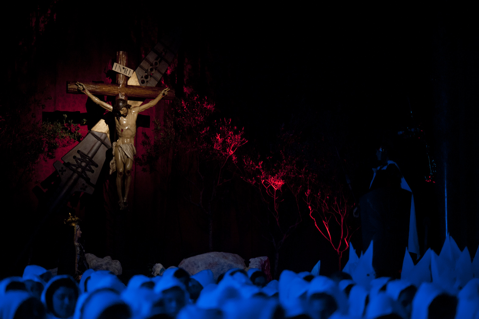 Il culto della morte, le icone sacre, il gesto e la ritualità tra sacro e profano evidenziano quel concetto di teatro della crudeltà che come esperienza sensoriale rimane attaccata addosso anche quando conclude la sua funzione espiativa sul palco, per ritrovarla successivamente nei luoghi del quotidiano, nei sogni, nelle domande sulla fede e l’esoterismo.