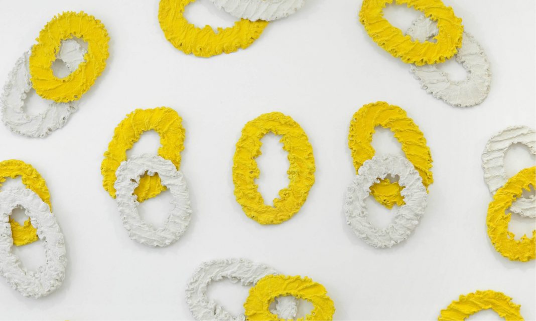 Con "Pittura B" (1977) e "Pittura GR" (1978) si assiste ad una progressione di più elementi, che si dispongono seguendo una traiettoria ad arco, creando tensioni e slanci in contrasto con la fissità della parete e nuovi equilibri in continuo movimento. Questi lavori rientrano nella ricerca sulla disseminazione che l’artista ha proseguito nei decenni successivi e che trova il suo esito più completo nell’installazione "Pittura G. VR. VL. AR." (1982) dove 12 elementi giocati sull’alternanza di colori primari e complementari, si dispongono liberamente sulla superficie della parete. Accanto a questi lavori sarà anche esposta l’opera "Pittura" (1977) oltre a diverse altre installazioni presentate in mostre personali nella sede della galleria nel 1982 e nel 1985.