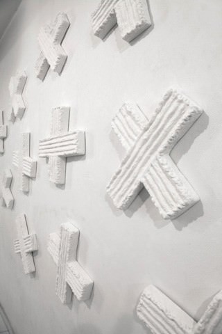 Il muro entra così a far parte dell'opera e il frammento, a sua volta, si ricompone sul muro in un tutto integrale.