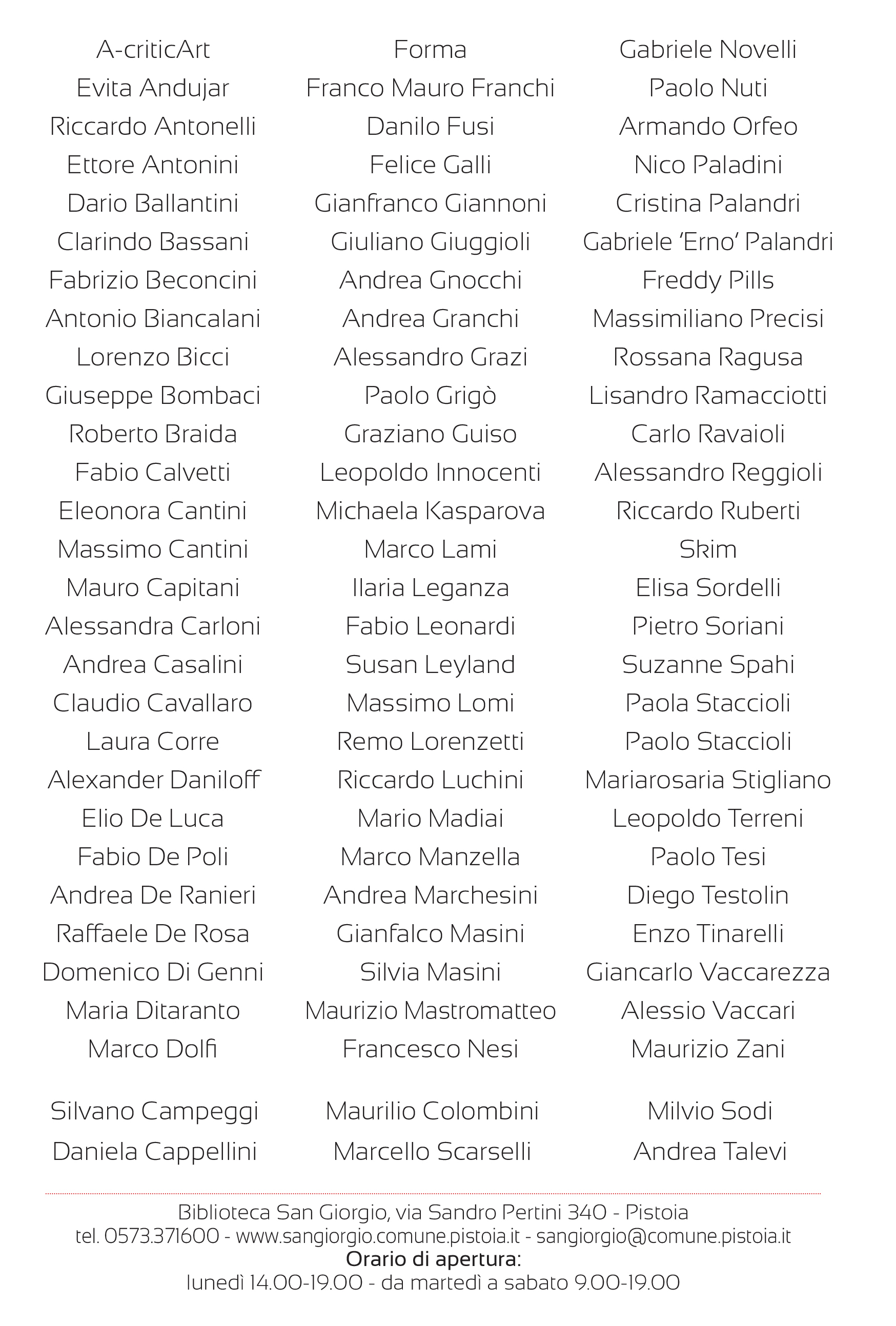 Sono stati scelti artisti tra le diverse generazioni, provenienti da luoghi e con esperienze dissimili, impegnati a dare un corpo di immagine e una voce poetica; sono nate opere eterogenee e proprio in questo sta la bellezza e la particolarità della raccolta.