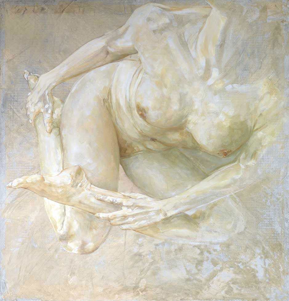 [...] “Il cemento, nell’incanto del quadro, traduce la sua grigia massa fisica in leggerezza siderale, spazio infinito, senza gravità, in cui sensuali lacerti figurali, pittoricamente mutuati dai corpi delle stesse autrici, fluttuano. [...] Si tratta quindi di un percorso introspettivo e, perciò, complesso, che muove dalla corporea fisicità, conosciuta visivamente attraverso la fotografia e riconosciuta e rigenerata attraverso la pittura, per andare molto oltre e ritrovare in essa quelle ancestrali pulsioni, quella varietà di sentimenti che la nudità sa esprimere in modo universale e che un dipinto sa contenere eludendo, nel suo eterno qui e ora, certe insidie del tempo...” (Andrea Romoli Barberini)
