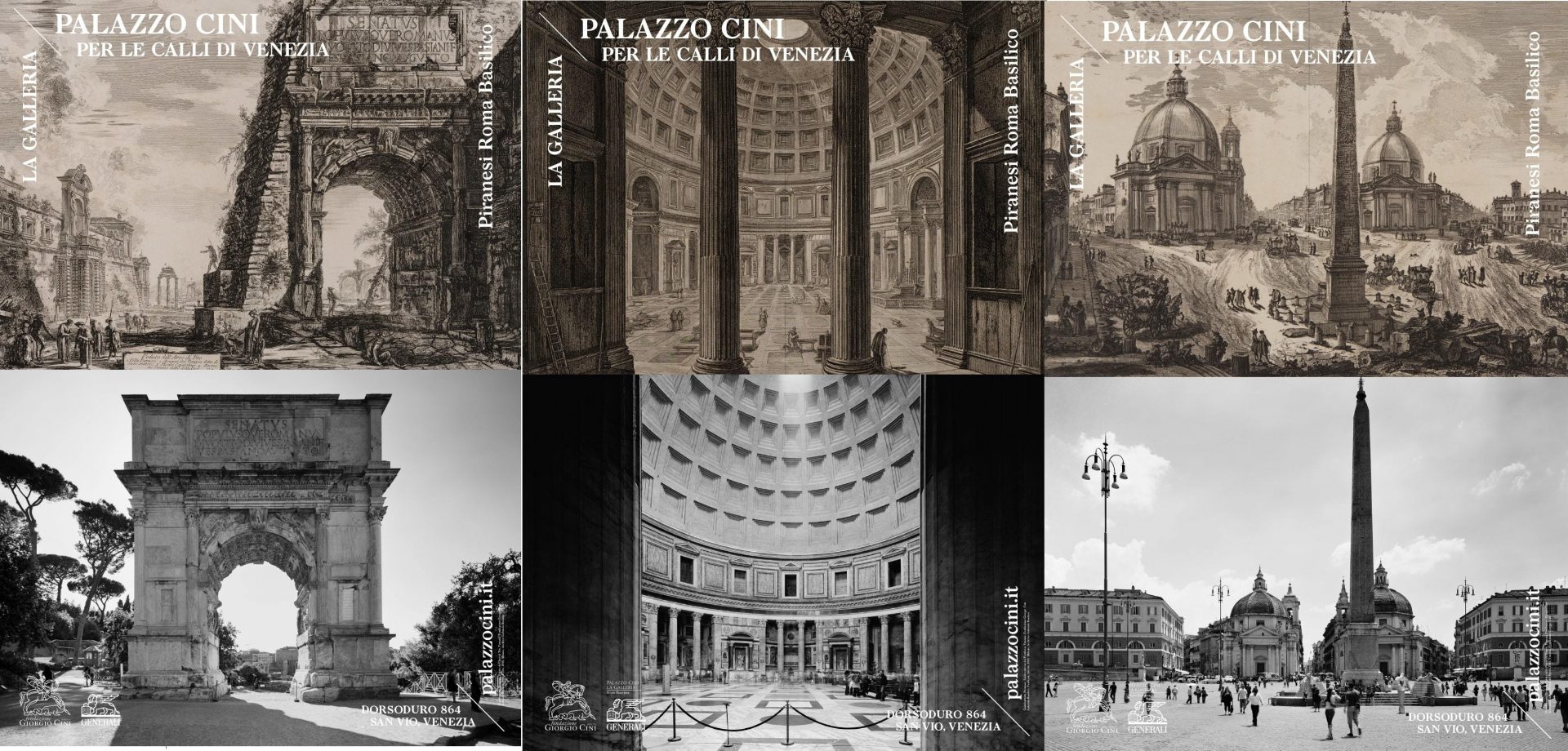 Palazzo Cini per le calli di Venezia mostrerà ai passanti, fino alla riapertura della casa-museo che fu dimora di Vittorio Cini, le riproduzioni di alcuni dei luoghi più simbolici della Città eterna, rappresentate dalla combinazione tra le stampe originali realizzate nel ‘700 dall’incisore veneziano e conservate dalla Fondazione Cini e le vedute di Roma del grande fotografo milanese Gabriele Basilico, realizzate con le stesse angolazioni delle incisioni piranesiane su commissione della Cini nel 2010.