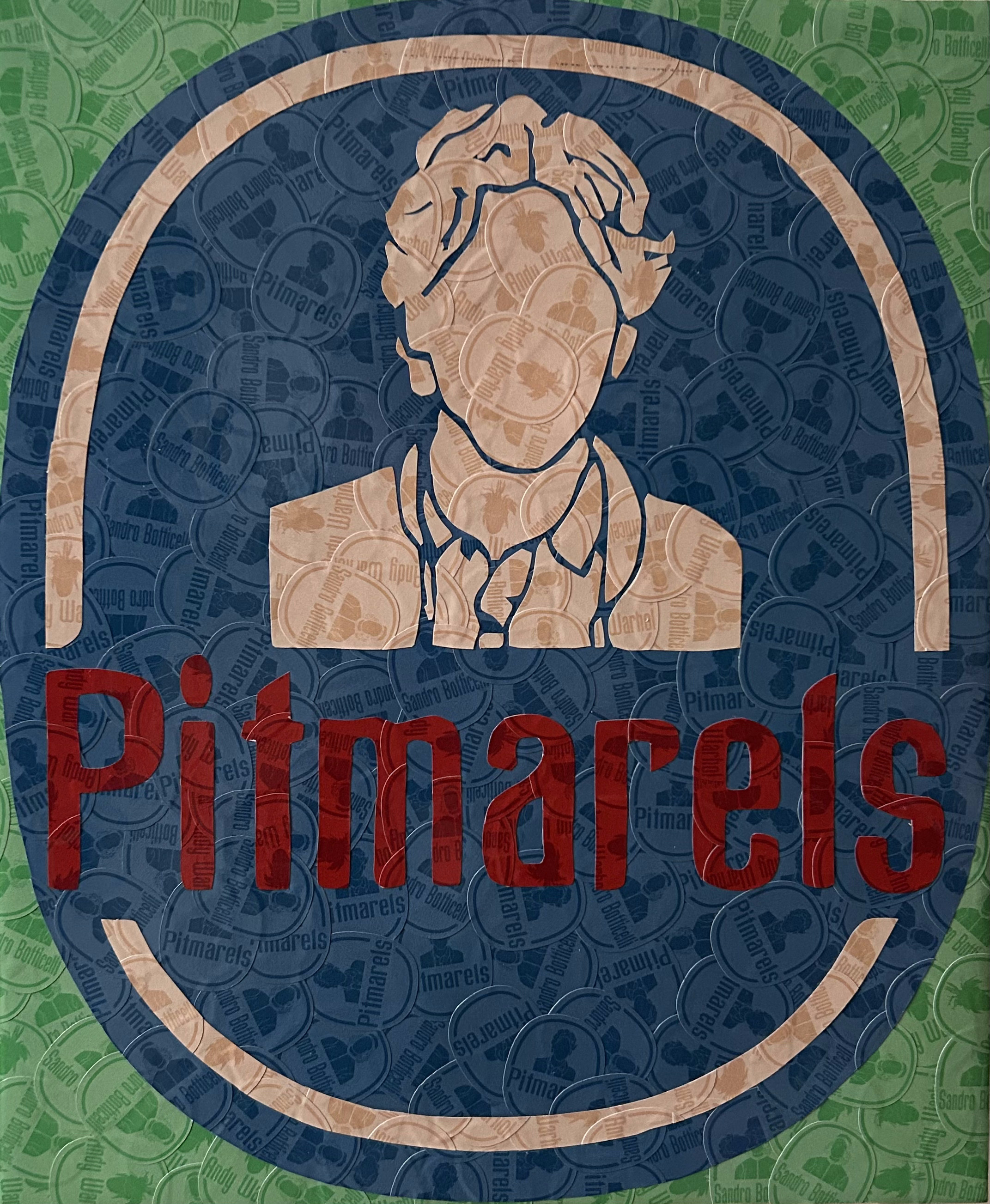 Pitmarels, ideatore di una tecnica inedita denominata Sticking Detach, pone gli adesivi al centro del suo linguaggio espressivo. Attraverso questa pratica, materiali ordinari e di uso quotidiano vengono trasformati in strumenti di approfondimento concettuale e rappresentazione estetica. Gli adesivi, ispirati a quelli del marchio Chiquita, acquisiscono un nuovo significato, passando dal mondo del consumo a una dimensione artistica densa di contenuti simbolici.