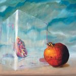 Si tratta di una costruzione concreta e non illusiva dello spazio pittorico, che rimanda alla volumetria del colore sfruttata da Teresa Michetti nei suoi dipinti a metà tra il metafisico e il surreale. Da Giorgio De Chirico l’artista prende la coesistenza in uno stesso ambiente di oggetti appartenenti a contesti differenti (vedi l’altalena e l’arancia in Regained freedom), ma anche la piccola figura del filosofo che si staglia all’orizzonte abitando uno spazio così ampio da sembrare subissarlo (Towards). Questi elementi, insieme ad altri prettamente surreali come le forme ingigantite all’inverosimile e gli oggetti personificati, sono resi contemporanei nel senso più stretto del termine grazie a un minuzioso lavoro sul colore.