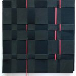 La prima a dimostrarlo è Silvia Orlandi, particolarmente interessata a quel manuale del grande artista tedesco, pubblicato per la prima volta nel 1963, che è “Interazione del colore”. Dalle lezioni sul modo di affinare la sensibilità per la luce, lei ha colto l’importanza di saper leggere tutti i colori, compresi il bianco e nero, perché anche questi ultimi possono avere diverse tonalità che si compenetrano in quantità variabili. Ecco allora che la sua ricerca si focalizza sulla dimostrazione delle infinite gradazioni esistenti fra i poli del bianco e del nero, e per fare questo utilizza materiali differenti (carta, gomma, feltro) che per loro stessa natura hanno sfumature di nero diverse. Il suo è un po’ un discorso all’incontrario rispetto agli Achrome di Piero Manzoni degli anni Cinquanta, che invece studiavano la riflessione della luce attraverso oggetti e materia dentro opere completamente bianche. Qui invece il colore viene assorbito e talvolta acceso da lampi di rosso che mettono in moto la composizione, così come fanno i tagli particolari delle opere. Potremmo definire questi lavori di Orlandi come pitto-sculture, adattate alle pareti attraverso fili messi in evidenza, ma eventualmente autonome su qualsiasi tipo di supporto e perfino a pavimento. C’è dunque un grande senso di libertà che in qualche modo resta fedele al discorso di Albers, il quale concepiva le sue lezioni pratiche come un mero accompagnamento alla creatività.