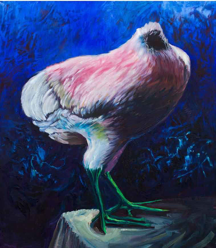 I soggetti dei lavori presentati sono quelli della tradizione classica: si passa dai ritratti ai paesaggi fino all’astrattismo. Quello che cambia è, ovviamente, il diverso approccio di chi li ha dipinti. Lo sguardo indagatore è quello di ragazzi di vent’anni che guardano i loro coetanei, lo spazio urbano in cui si muovono dove è possibile incontrare piante preistoriche, presenze incongrue in tanti giardini cittadini, che crescono accanto a motori di condizionatori industriali. C’è chi trae ispirazione da immagini fotografiche e chi, più tradizionalmente, chiede ad amici o sconosciuti di posare per un paio d’ore dal vivo sul divano del proprio studio; chi, ancora, esprime la propria ricerca estetica nella ripetizione meditata del medesimo gesto pittorico sulla tela. Nuovi colori compaiono sulla tavolozza: campeggiano con prepotenza l’arancione fluo delle reti da cantiere e il blu elettrico dei bidoni di plastica per la raccolta delle acque, a rappresentare un’urgenza ecologica inedita fino a qualche decennio fa.
