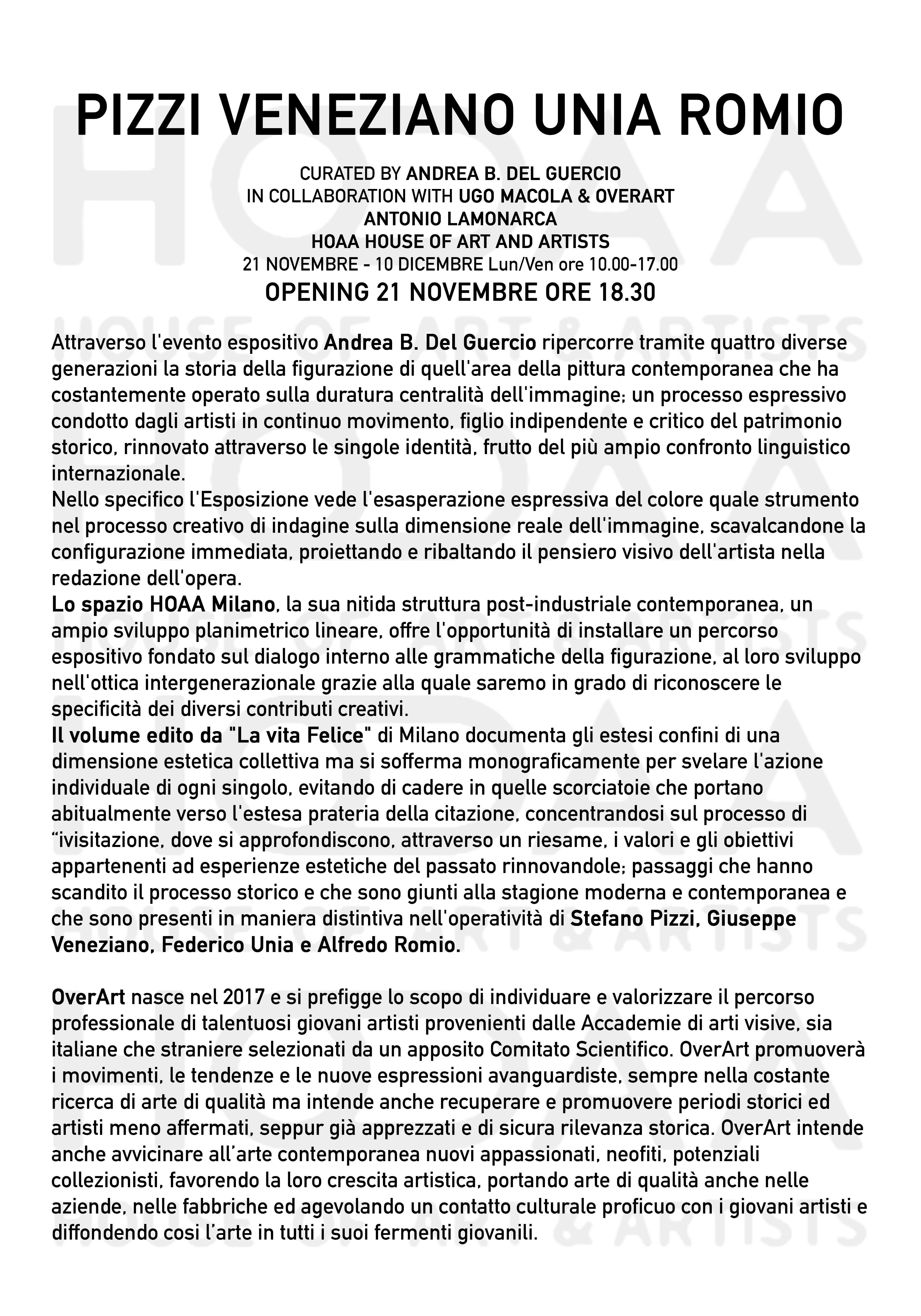 Lo spazio HOAA Milano, la sua nitida struttura post-industriale contemporanea, un ampio sviluppo planimetrico lineare, offre l'opportunità di installare un percorso espositivo fondato sul dialogo interno alle grammatiche della figurazione, al loro sviluppo nell'ottica intergenerazionale grazie alla quale saremo in grado di riconoscere le specificità dei diversi contributi creativi.